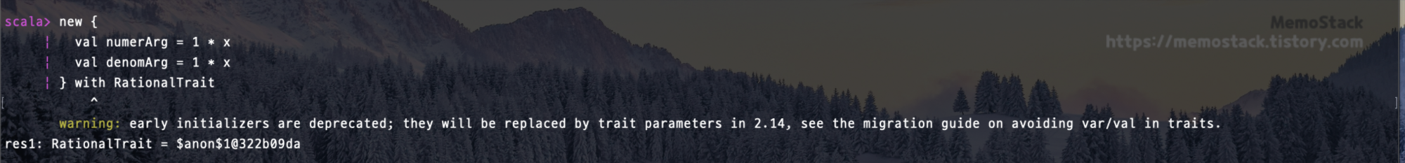 위 예제(트레이트)는 분수를 표현하는 트레이트이다. (numerArg: 분자,denomArg: 분모) 따라서,denomArg는 0이 될 수 없다.