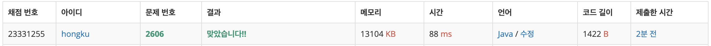 어느 날 1번 컴퓨터가 웜 바이러스에 걸렸다. 컴퓨터의 수와 네트워크 상에서 서로 연결되어 있는 정보가 주어질 때, 1번 컴퓨터를 통해 웜 바이러스에 걸리게 되는 컴퓨터의 수를 출력하는 프로그램을 작성하시오.