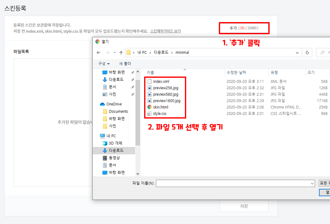 스킨 파일 5개를 선택하여 추가합니다.