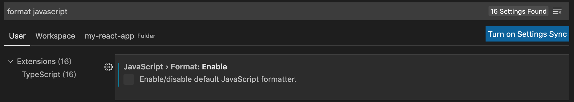 - 기본 javascript Formatter를 비활성화