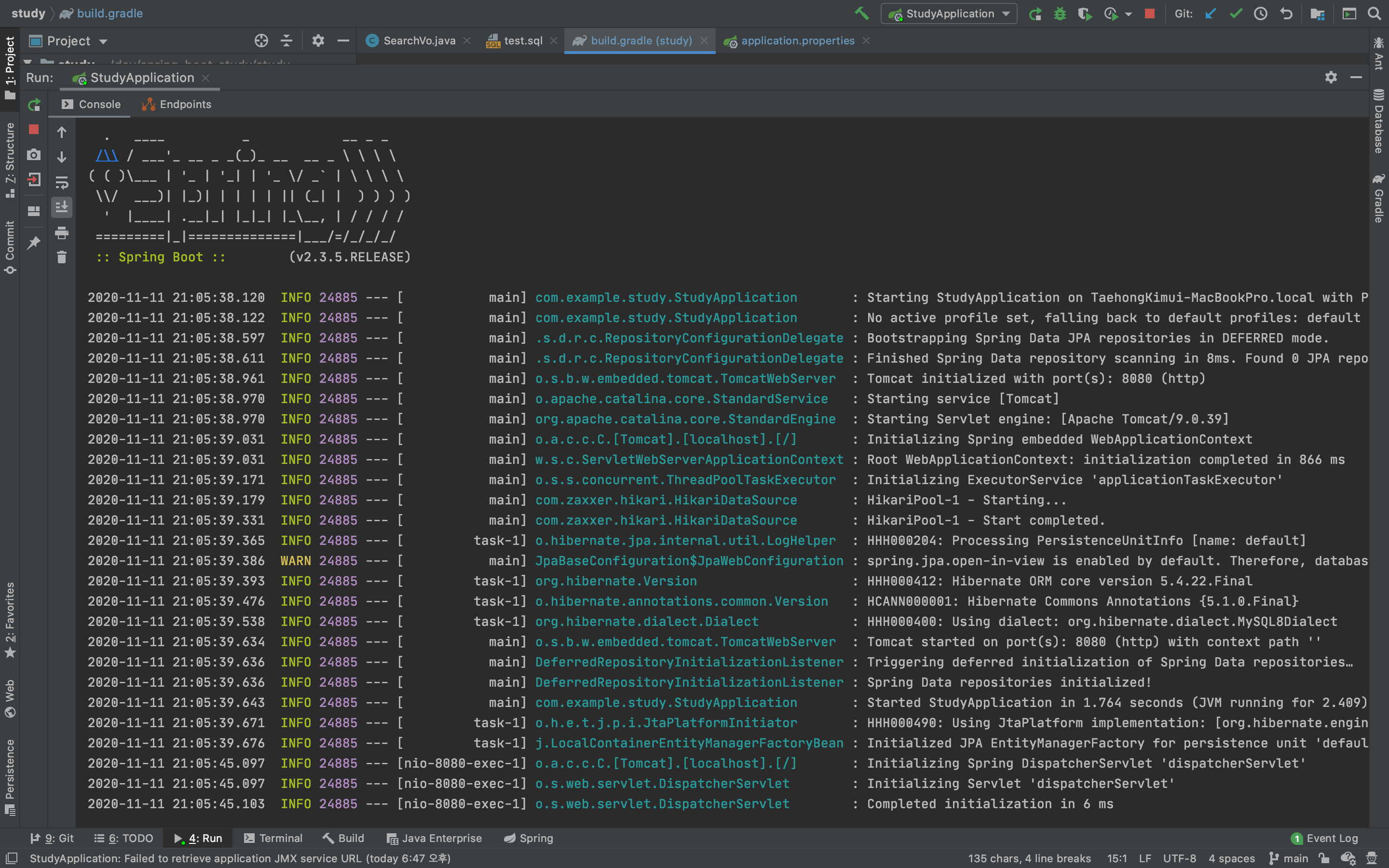 spring.datasource.url=jdbc:mysql://localhost:3306/STUDY_DB?useSSL=false&useUnicode=true&serverTimezone=Asia/Seoul
