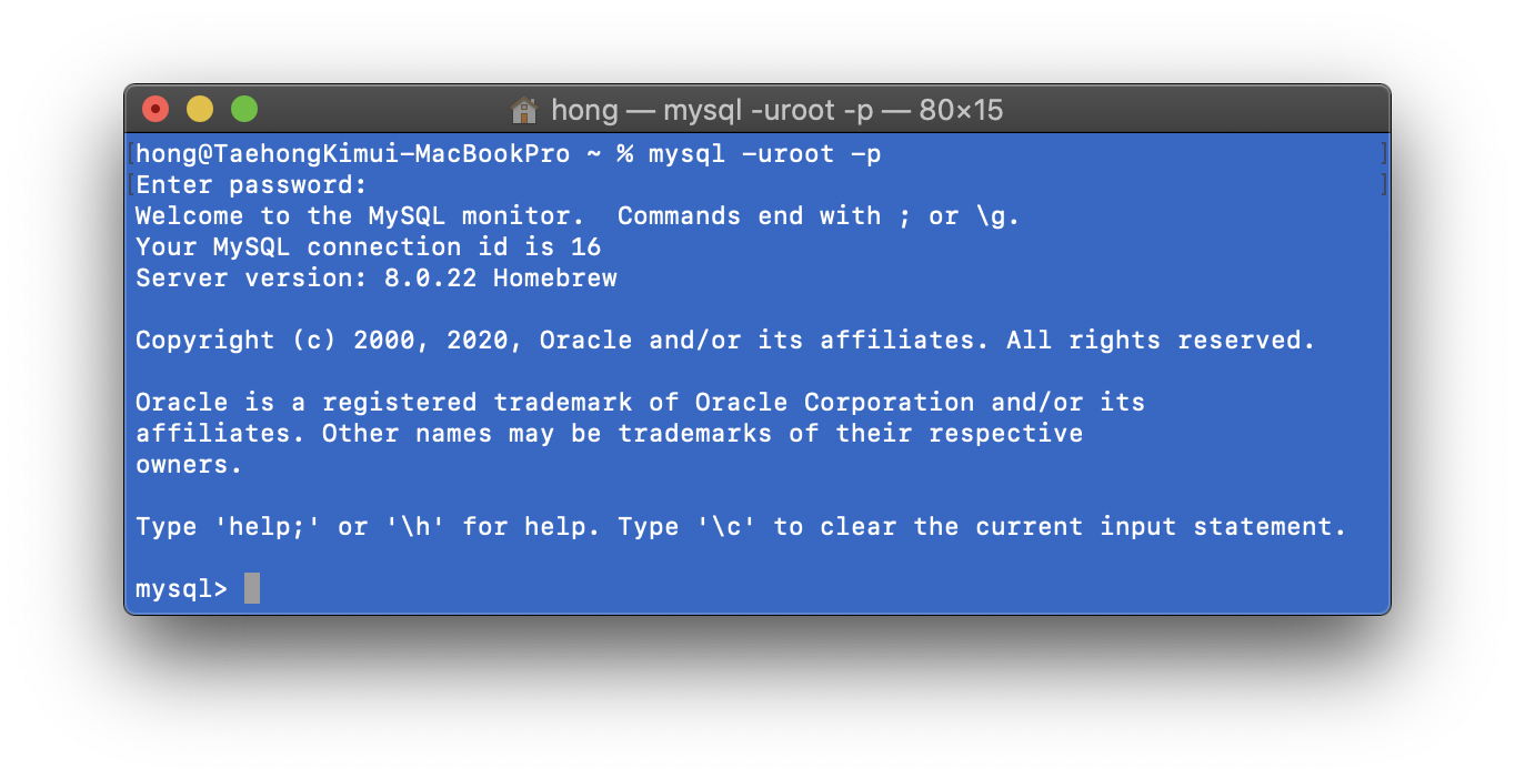 Welcome to the MySQL monitor. Commands end with ; or \g.
