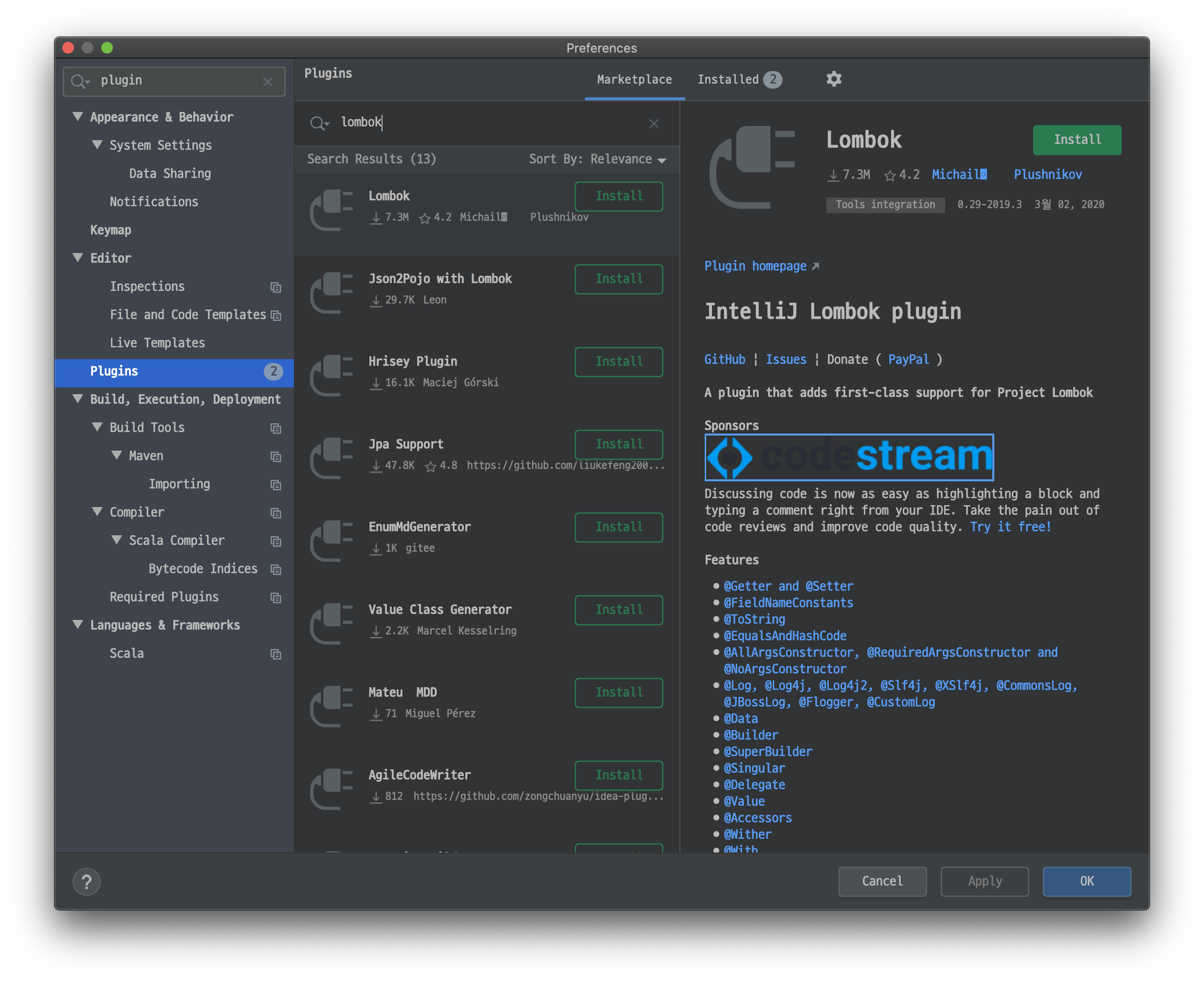 인텔리제이 플러그인 설치