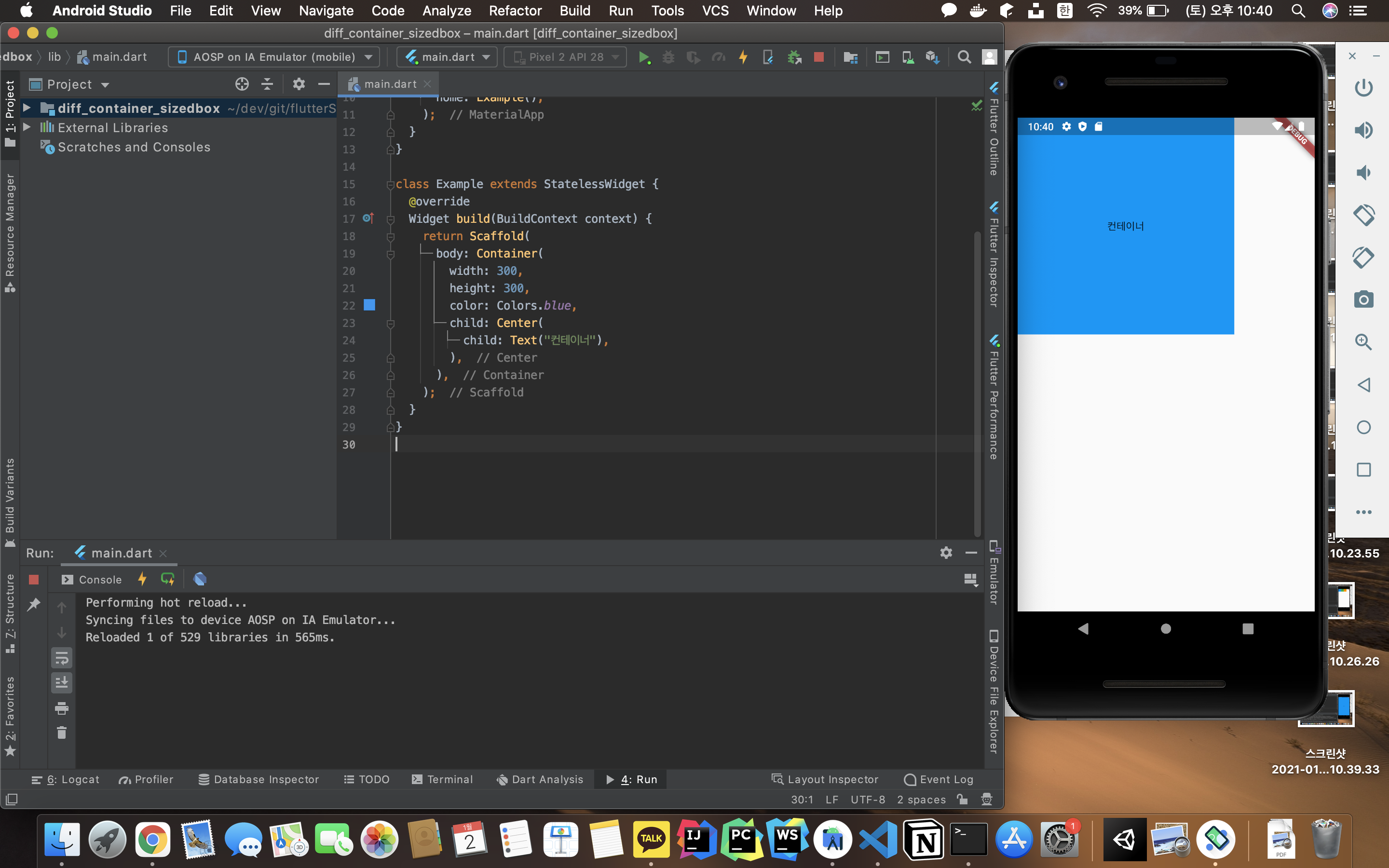 Container와 SizedBox 위젯은 둘 다 width와 height를 가진다. 그래서 너비와 높이를 설정할 수 있다.