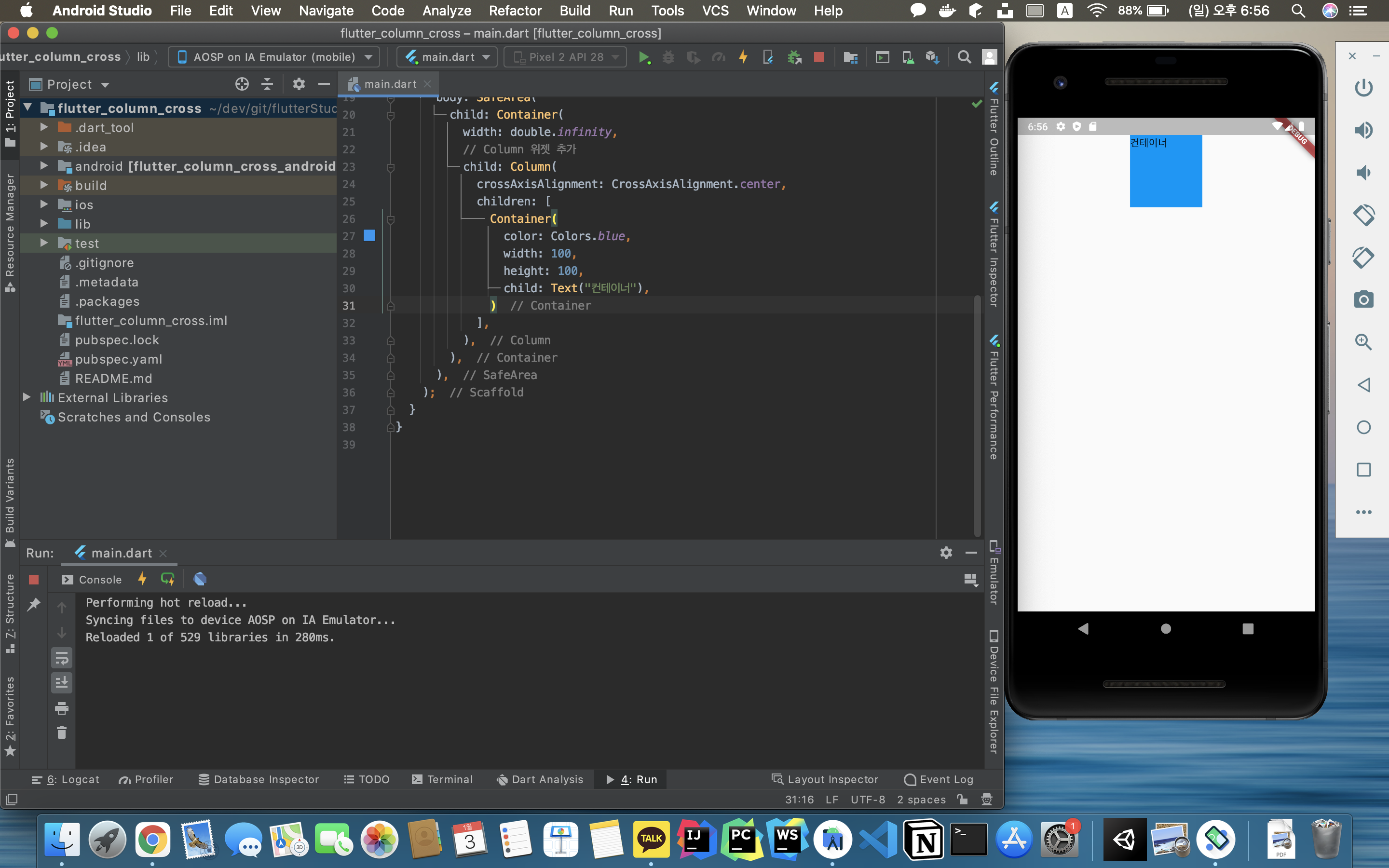| 플러터(flutter) - 기본 레이아웃 (Column, Row, Container) (0) | 2021.01.02 |