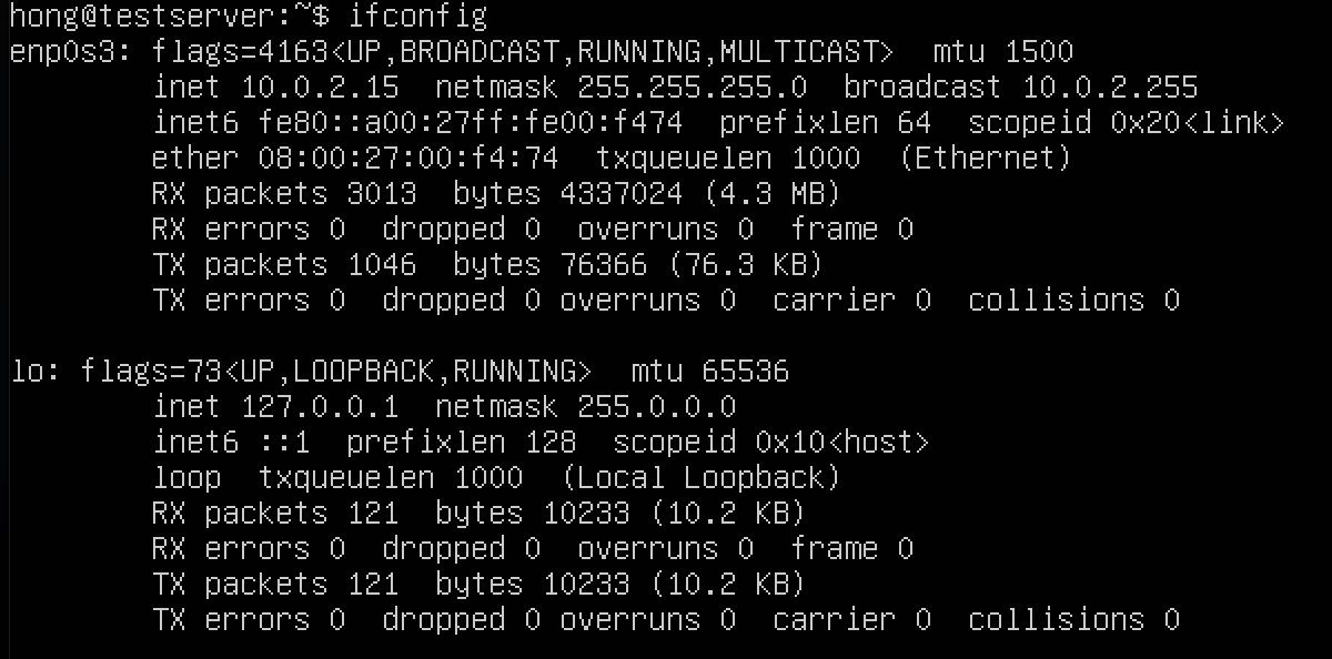 Ubuntu 20.04에서는 ifconfig 를 바로 사용할 수 없다.