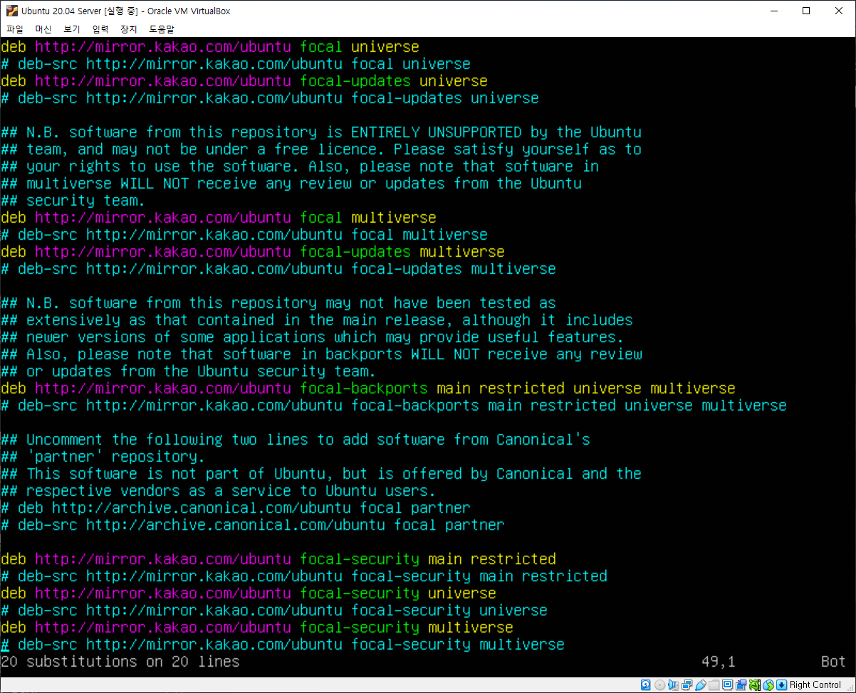 mirror.kakao.com로 변경하게 되면 apt로 패키지를 다운로드 받을때 꽤나 빨라진다 (체감상으로도 느껴짐)