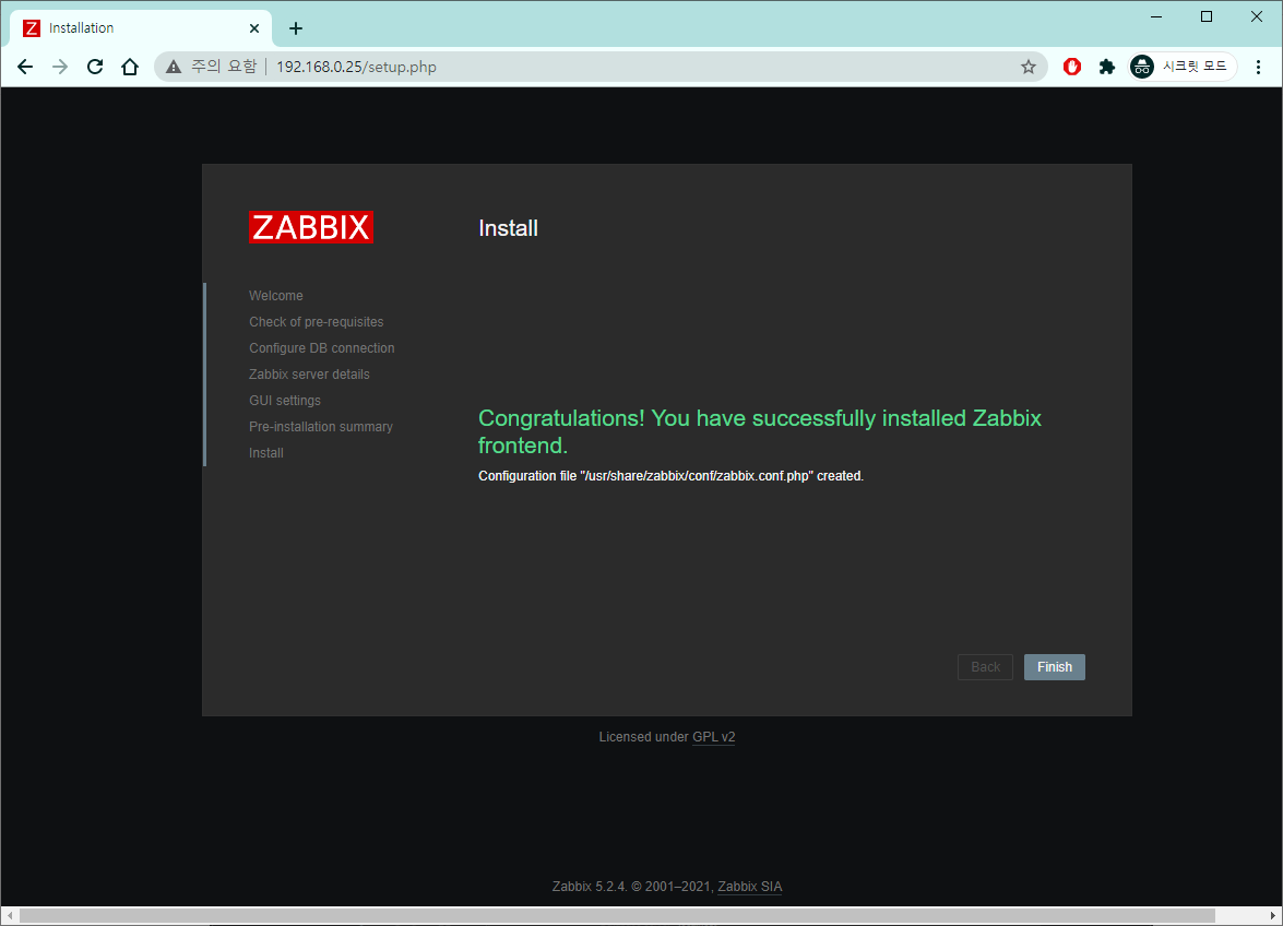 # systemctl restart zabbix-server zabbix-agent nginx php7.4-fpm