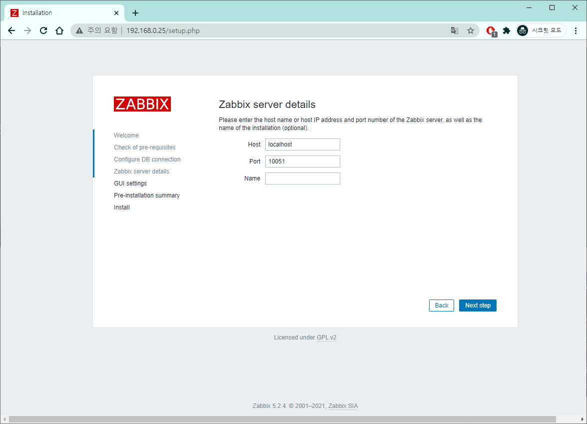 /etc/zabbix/nginx.conf 에서 listen 80과 servername을 주석 해제 한다.