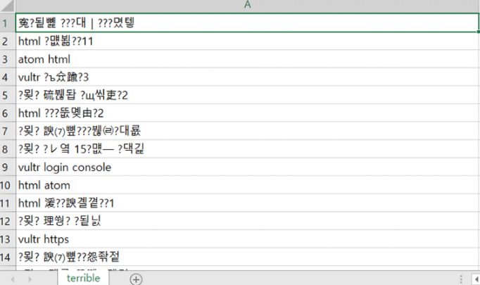 인코딩 방식이 다르다보니, EUC-KR로 작성된 문자를 다른 인코딩 방식으로 읽으려고하니 문자가 깨지는 현상이 발생함
