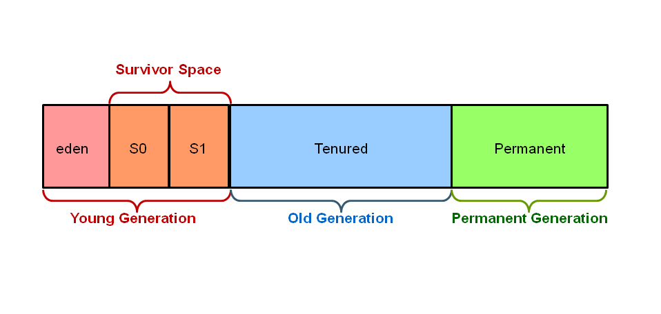| Eden | S0 | S1 | Old | Permanent | C Heap | Thread Stack |