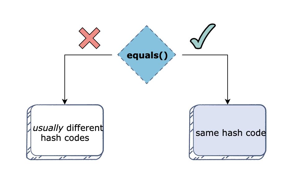 equals()를 재정의(override)할 때는,hashCode()도 재정의해야 한다. (항상 함께 재정의)equals()의 값이true이면,hashCode()도 동일한 값을 가져야 함- 반대로