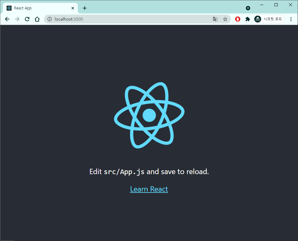 위와 같이 나오면 react app 생성 완료!