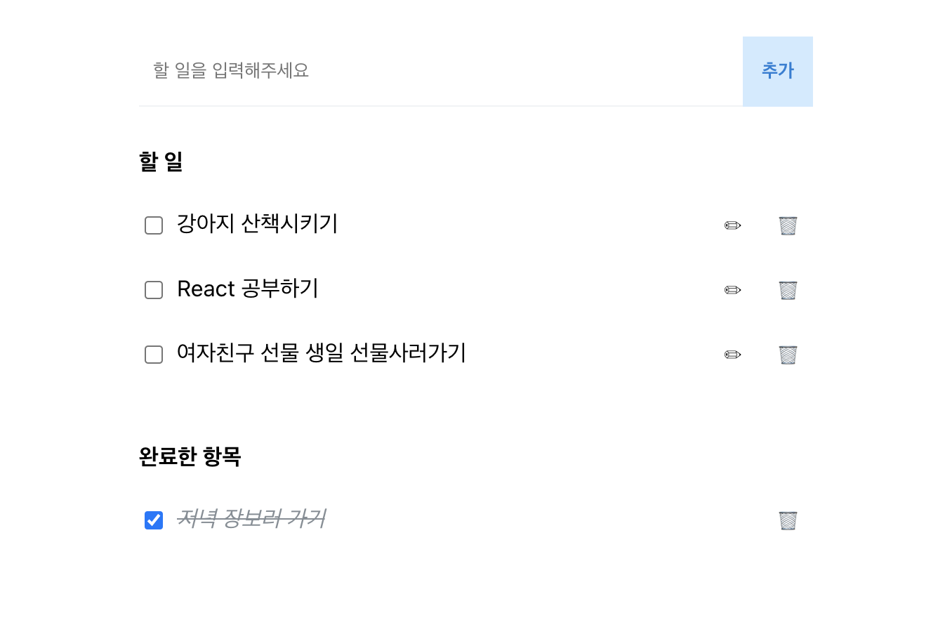 | React로 간단한 ToDo List 만들기 (#6 완료 목록 조회 기능 개발) (0) | 2021.07.14 |
