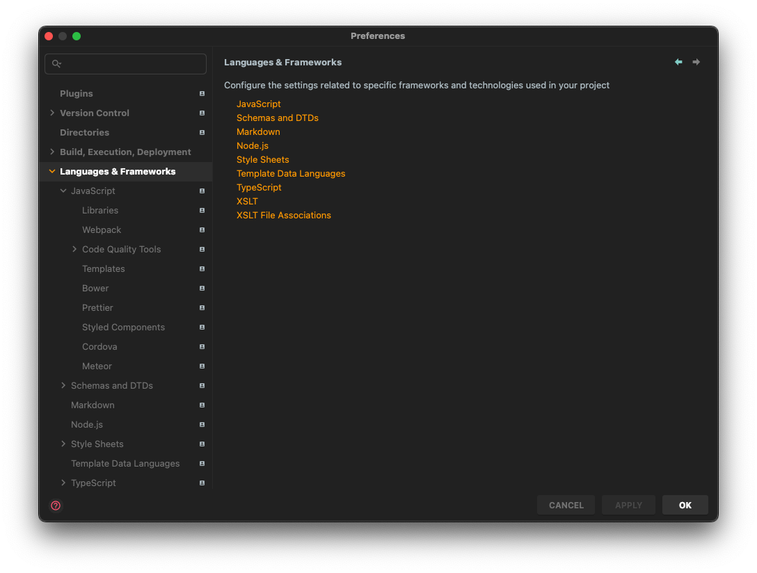 - WebStorm > Preferences (단축키: command + ,)