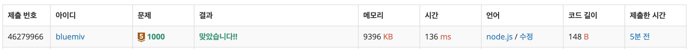 https://github.com/bluemiv/Algorithm/blob/master/baekjoon/nodejs/src/ex01/ex1000.js