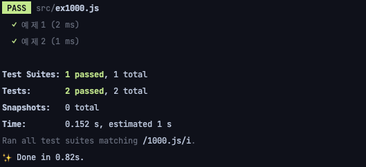 이제 문제를 풀어보고, 본 글에서는 테스트를 위해 백준 1000번 문제를 풀어봤다. 문제를 풀어보고 테스트 코드를 3개 작성해봤다.