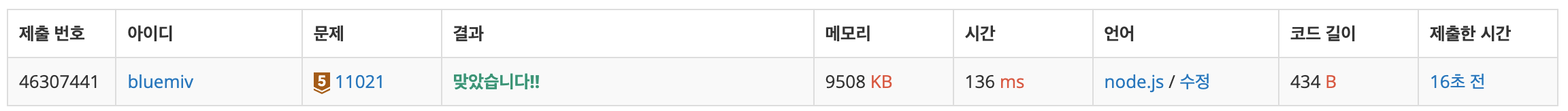 https://github.com/bluemiv/Algorithm/blob/master/baekjoon/nodejs/src/ex11/ex11021.js