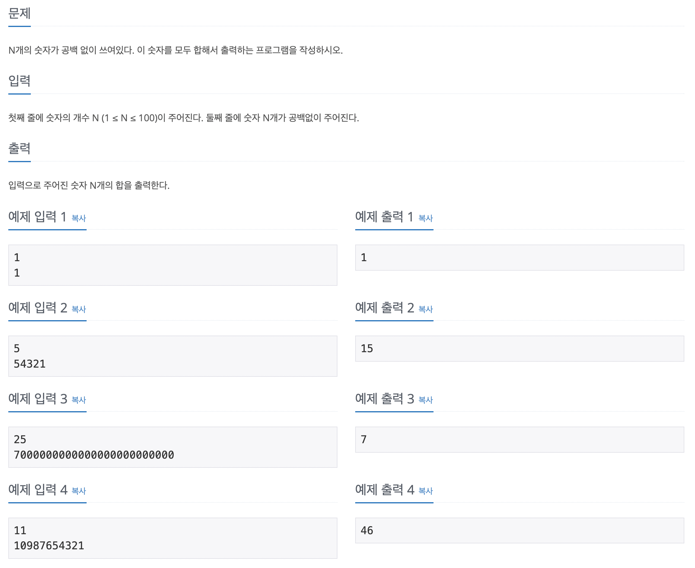 https://github.com/bluemiv/Algorithm/blob/master/baekjoon/nodejs/src/ex11/ex11720.js