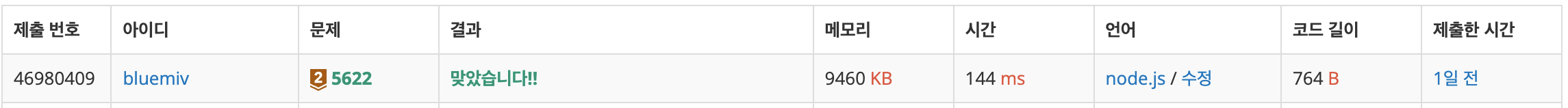 https://github.com/bluemiv/Algorithm/blob/master/baekjoon/nodejs/src/ex05/ex5622.js
