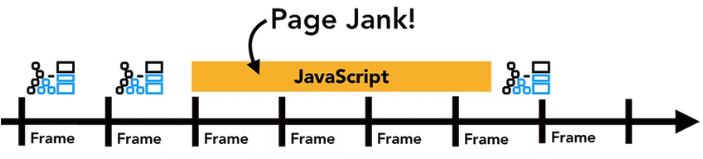 렌더링 작업이 화면 새로 고침을 따라가고 있더라도 이러한 계산은 기본 스레드에서 실행되므로 애플리케이션이 JavaScript를 실행할 때 블록킹이 될 수 있습니다.