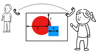 Renderer Process는 문서의 구조와 각 노드의 스타일을 알고 있지만 페이지를 렌더링하기에 충분하지 않습니다. 아래 예시와 같이 친구에게 빨간색 원과 파란색 사각형이 있다고 알려줘도 좌표 및 크기를 알 수 가 없습니다.