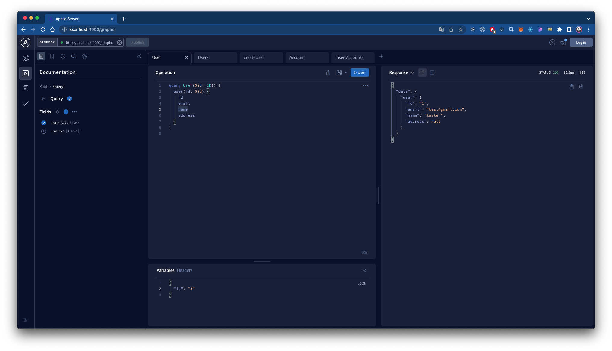 - Framework: apollo-server-express