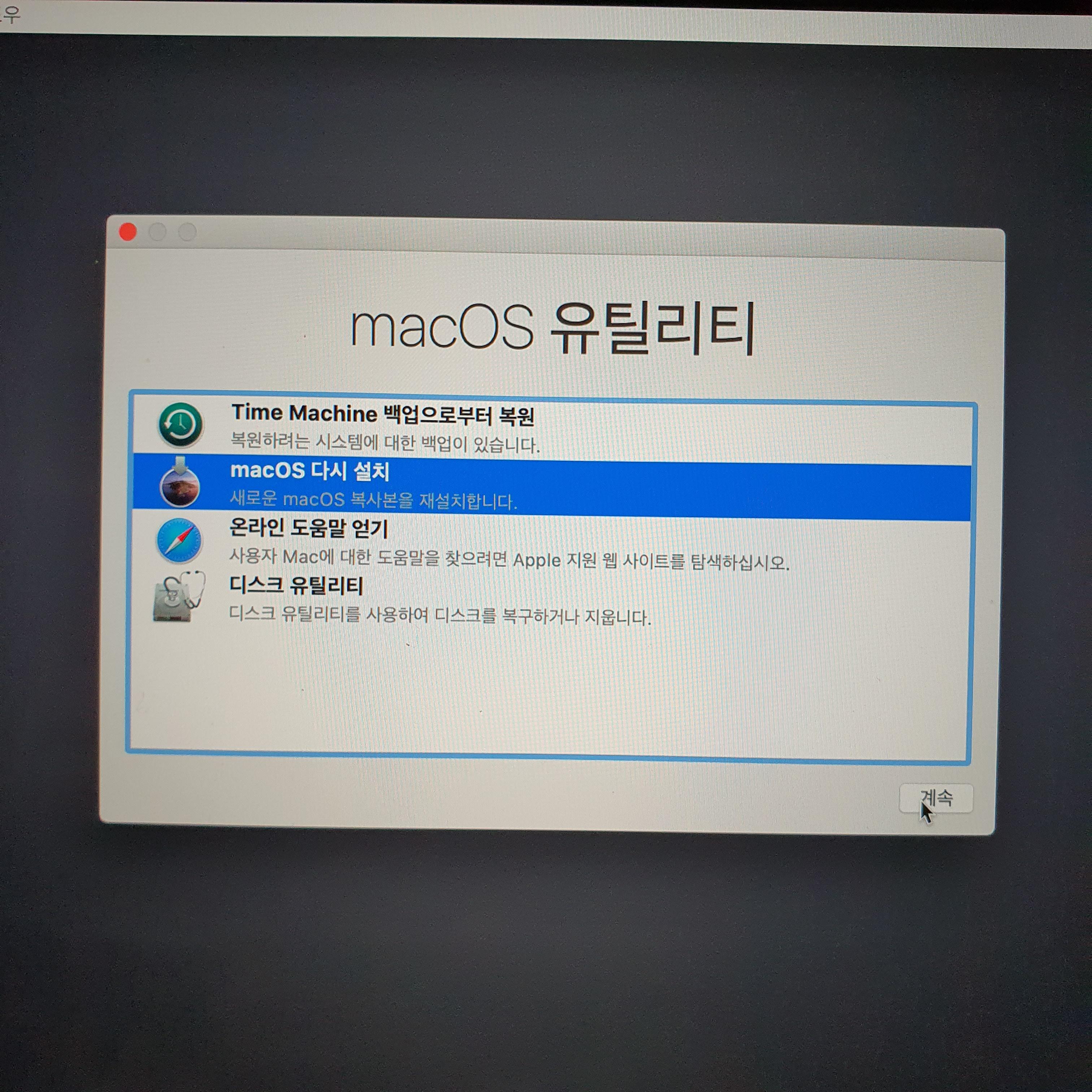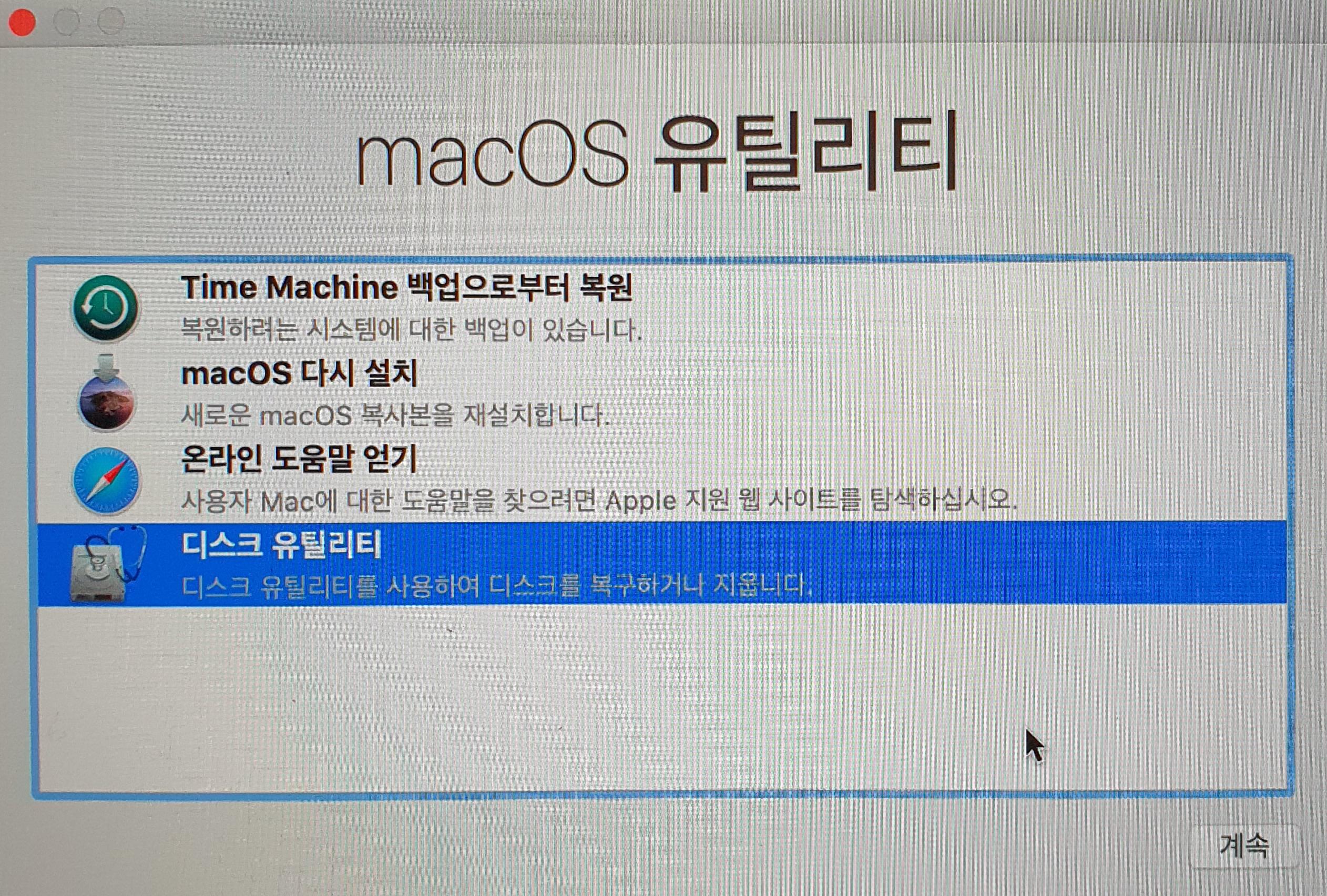 1. 'MacOS 복구 모드'를 실행 (맥북을 키면서 Command + R 을 누른다)