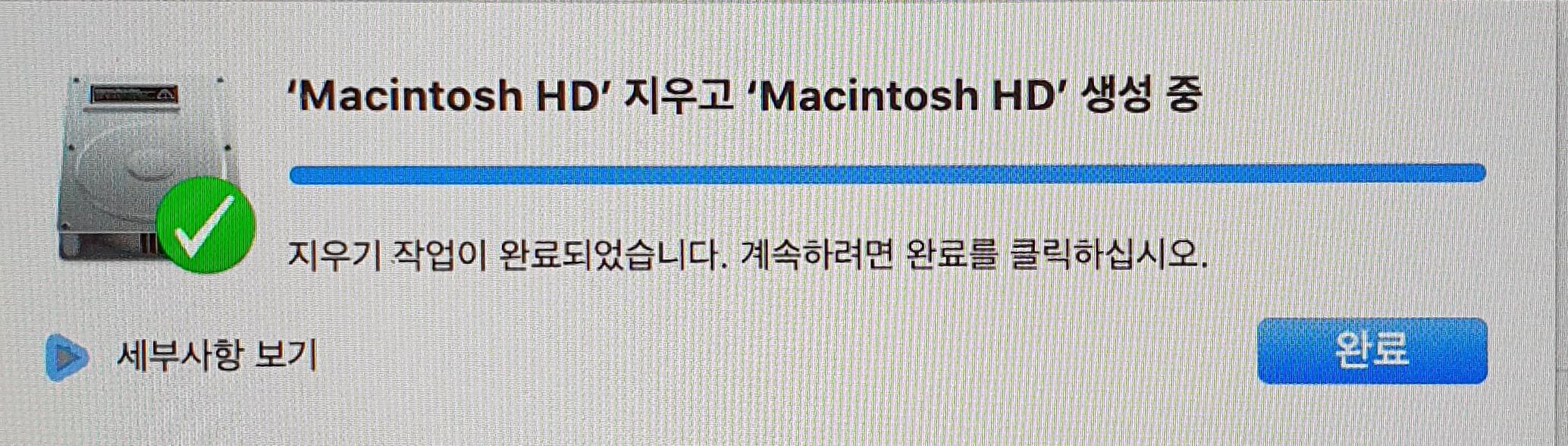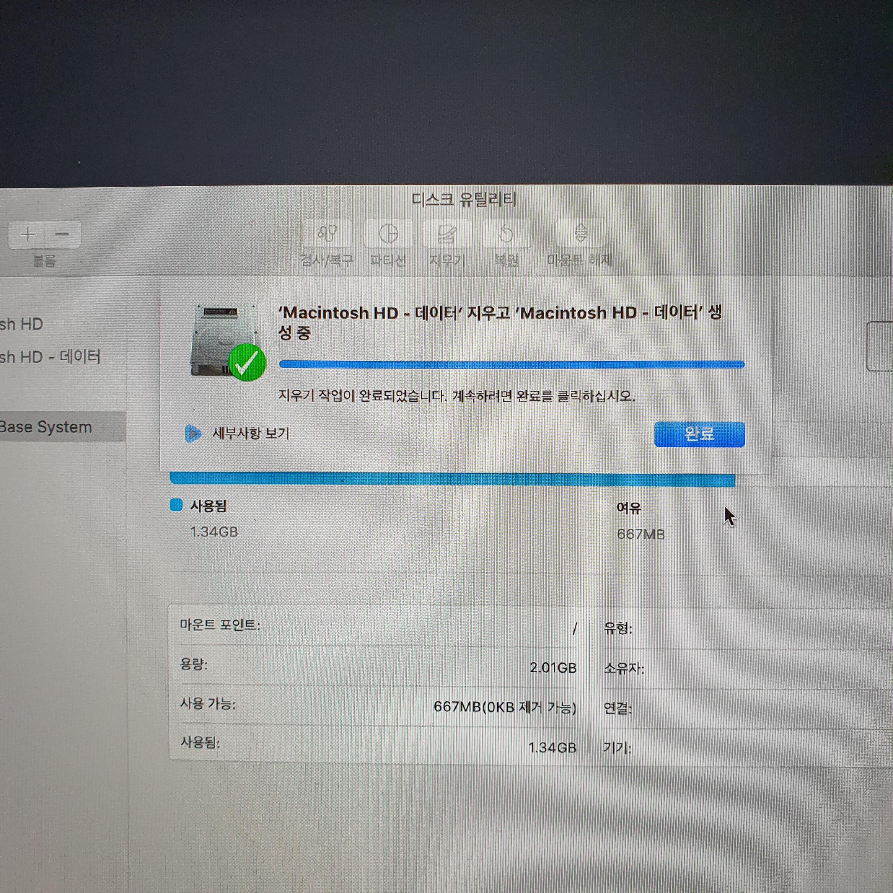 5. 완료 후 디스크 유틸리티를 종료한다.