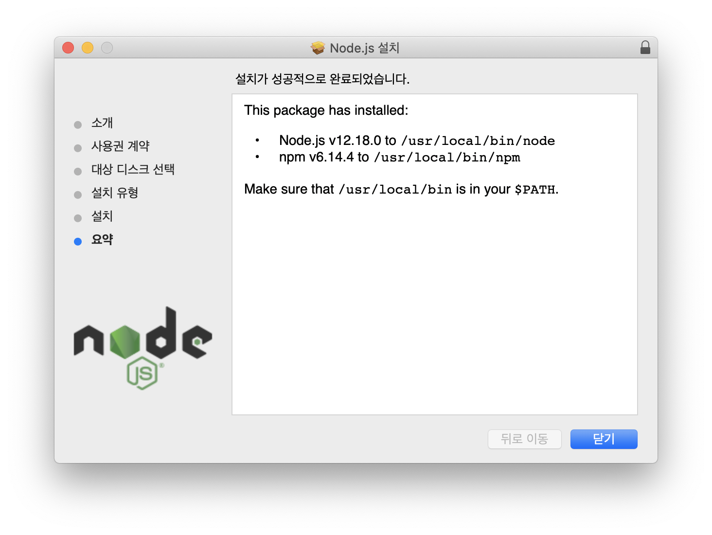 위와 같이 나오면 설치 완료