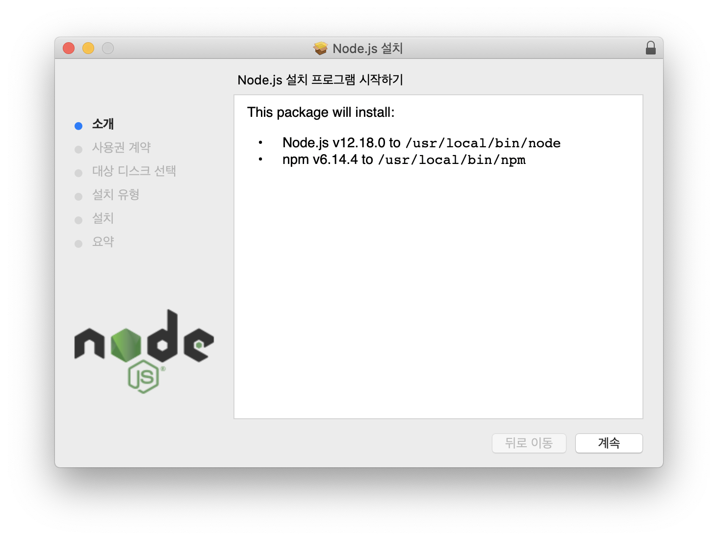 https://nodejs.org/ko/ 에서 node.js를 설치한다.