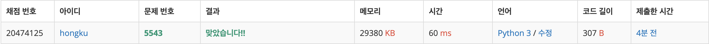 본 문제는 백준 알고리즘(https://www.acmicpc.net/)에게 있습니다.