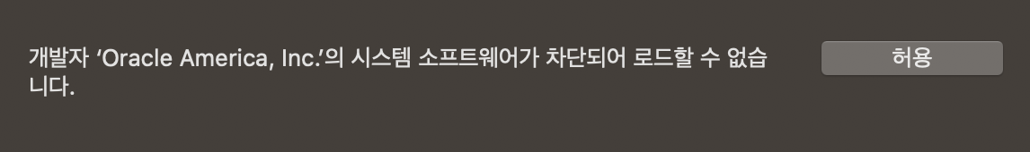 - 아래와 같이 Mac OS에서 차단을 하는 바람에 설치가 정상적으로 이루어지지 않는다. '허용'을 누른다.
